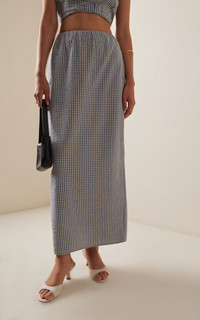 Centered on the principles of slow fashion, Aussie label POSSE is committed to producing the finest fabrications in limited quantities. Each piece is designed to be loved and worn for years to come — to be borrowed, swapped, passed down and cherished across a lifetime. The 'Mira' skirt is cut from crisp cotton and shaped with a relaxed column shape. Pair it with its co-ordinating top. PRODUCT DETAILS - Resort '25 - Zip fastening along back - Composition: 100% Cotton - Designer color: Blue/Cream Gingham - Dry clean or machine wash - Imported SIZE & FIT - Designed for a slim fit