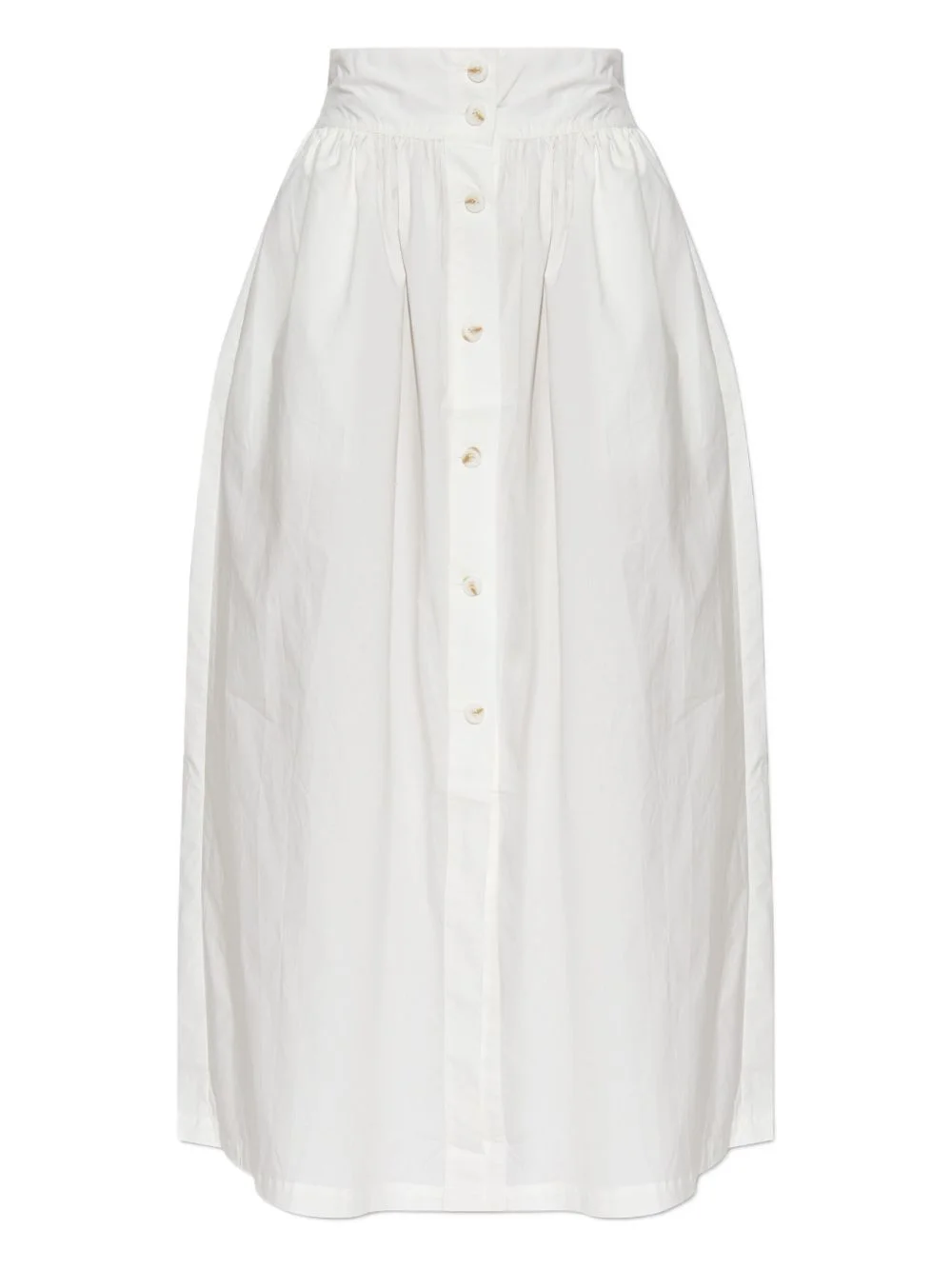 button-front gathered maxi skirt Highlights - White - Gathered waistband - Button front fastening - Side pockets - A-line shape Imported Composition Cotton 100% Washing instructions Read Manufacturer Guidelines