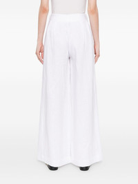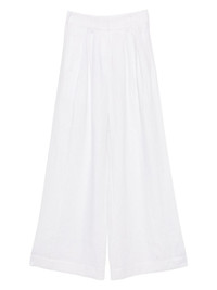 Parker trousers Highlights - White - Concealed front button, hook and zip fastening - Belt loops Imported Composition Lining: Cotton 100% Outer: Linen/Flax 100% SIZE & FIT Model measurements Height 5 ft 9 in(1.76 m) Bust/Chest 31.1 in(79 cm) Hips 35.03 in(89 cm) Waist 24.4 in(62 cm) FittingInformation Designed with a wide-leg cut, these trousers allow for a close fit at the waist and offer a loose and roomy fit over the leg Made from a lightweight non-stretch fabric Washing instructions Machine Wash