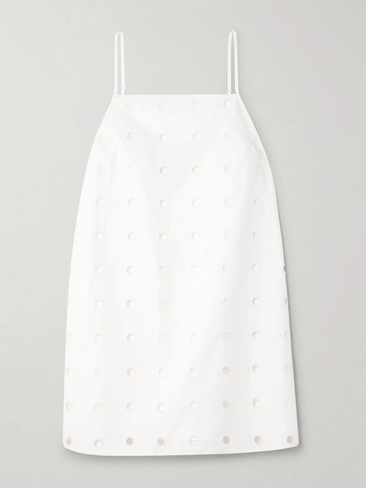 Posse's 'Peggy' dress is detailed with broderie anglaise circles that reveal subtle glimpses of skin. Made from cotton-poplin, it has a boxy shift silhouette with a straight neckline and adjustable straps. Wear yours with heels or ballet flats.