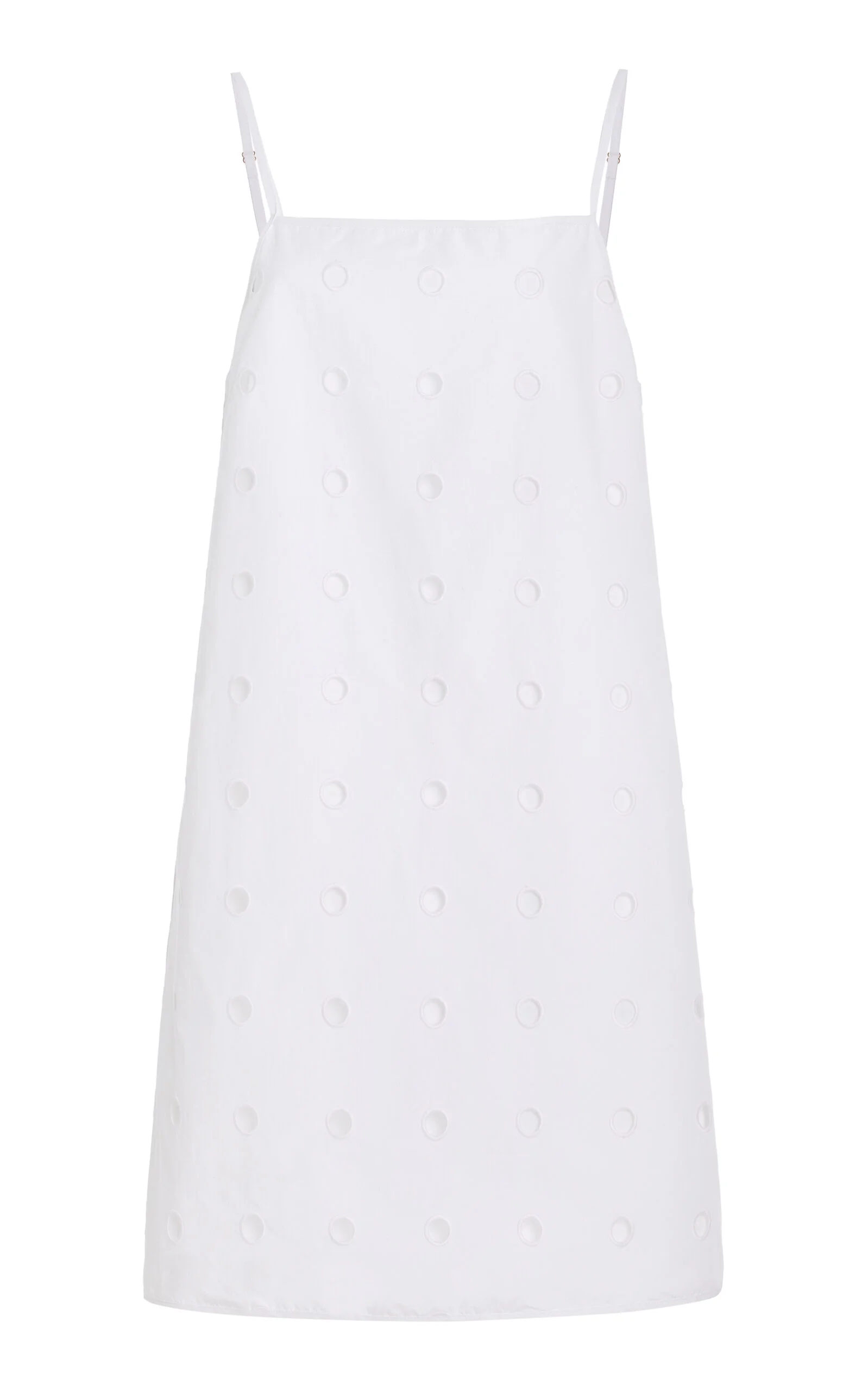 Centered on the principles of slow fashion, Aussie label POSSE is committed to producing the finest fabrications in limited quantities. Each piece is designed to be loved and worn for years to come — to be borrowed, swapped, passed down and cherished across a lifetime. Made from an airy weave using cotton, the 'Peggy' mini has a relaxed silhouette with embroidered dots and a lightweight lining. PRODUCT DETAILS - Pre-Fall '25 - Zip fastening - Composition: 60% tencel, 40% cotton - Designer color: Vintage White - Dry clean - Imported SIZE & FIT - Our model is wearing a size Small - Model is 5'11" with a 30" bust, 24" waist, and 34" hip - Designed for a relaxed fit