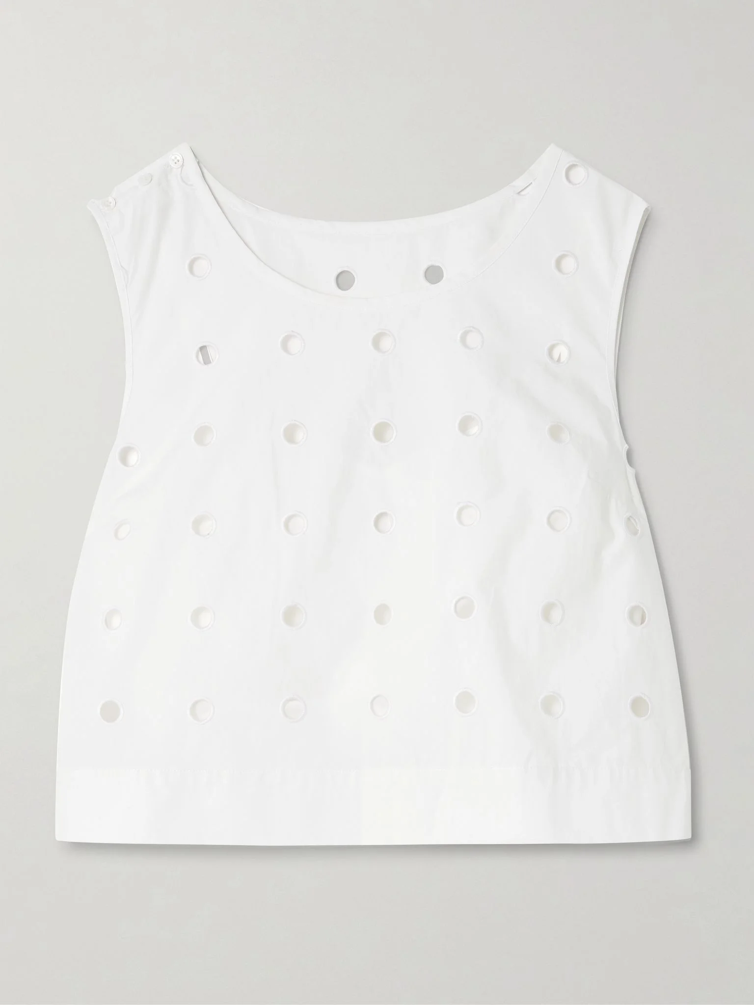 Posse's collections are filled with timeless styles you'll wear for years. This 'Peggy' tank is cut from cotton-poplin and has airy broderie anglaise circles throughout. Wear yours as a set with the coordinating skirt in our edit. Size & Fit - Fits true to size, take your normal size - Designed for a slightly loose fit - Mid-weight, non-stretchy fabric - Model is 175cm/ 5'9" and is wearing a size Small Model measurements: - Bust: 81cm/ 32” - Waist: 61cm/ 24” - Hip: 87cm/ 34” Details & Care - White broderie anglaise cotton-poplin - Slips on - 100% cotton - Designer color: Vintage White