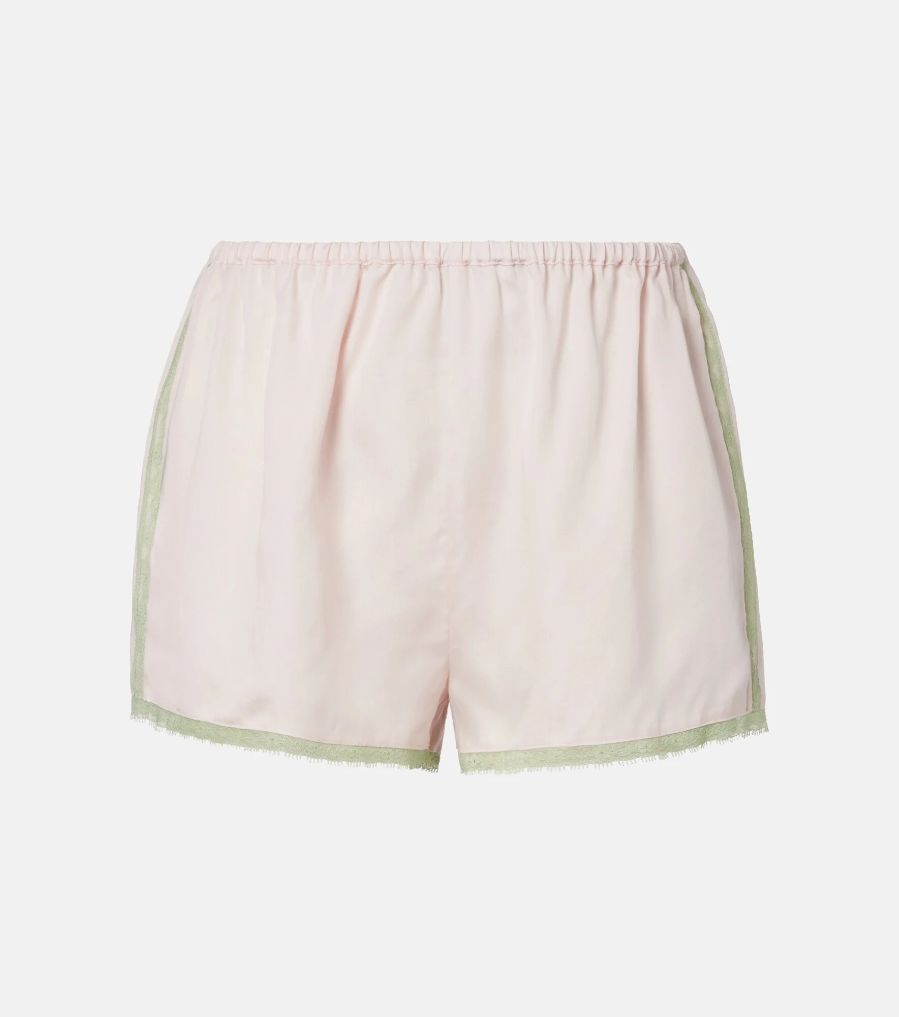 Posse channels effortless elegance through timeless silhouettes and refined simplicity. The Perla shorts are made from a lightweight fabric and detailed with delicate lace trims and an elasticated waistband. Product Details - Material: 100% Tencel® - Care instructions: dry clean - Made in China - Color: pink - Designer color name: Mauve & Soft Green - Elasticated waistband - Item number: P01169079