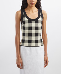 DETAILS Knitted top Heritage Plaid pattern Slim fit Scoop neckline SIZE & FIT Model is 178cm/5'10"; Chest: 79cm; Waist: 62cm; Hip: 88cm and wears a size S COMPOSITION & CARE 87% Viscose; 13% Polyester Cold hand wash