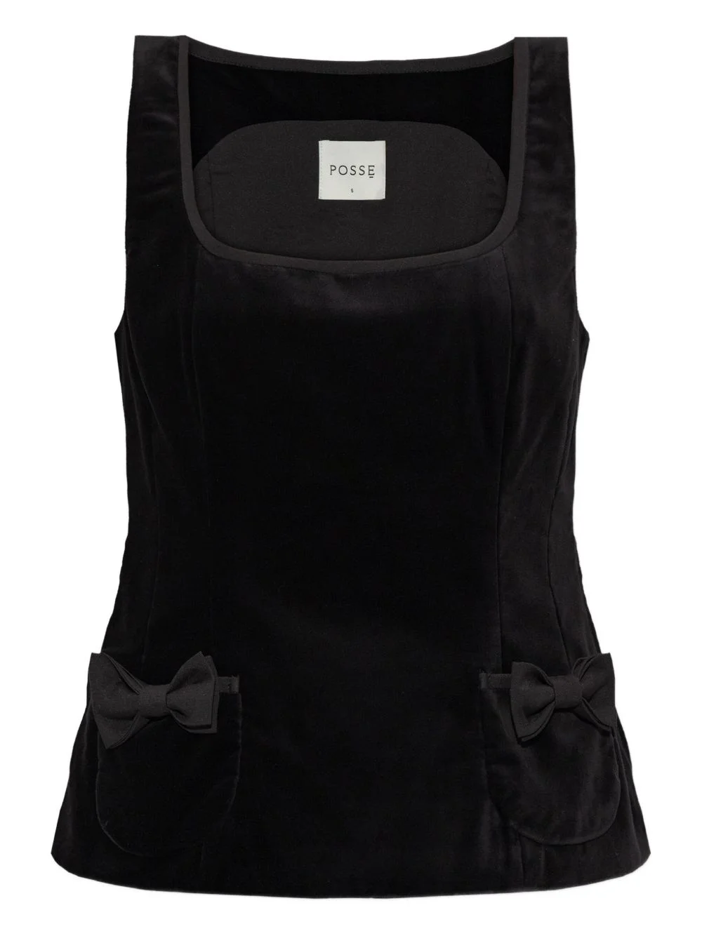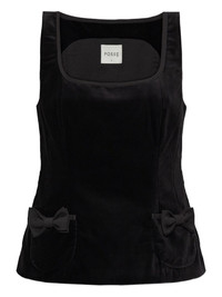 Quincy bow pocket top Highlights - Black - Square neck - Bow detail - Two front pockets - Sleeveless - Velvet effect Imported Composition Cotton 100% Washing instructions Dry Clean Only