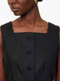 PRODUCT DETAILS - Posse linen mini dress - 100% linen; lining 100% cotton - Exposed button fastening at front - Regular fit, square neckline, sleeveless, two welt pockets at front, dart at front and back, martingale at back, fully lined, flared hem - Specialist dry clean only - True to size - Size small: length 31in / 79cm - Model is 5ft 10in/1.78m and wears a size small - Midweight, stretchy Ref: R04393726