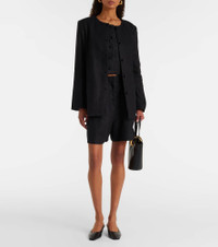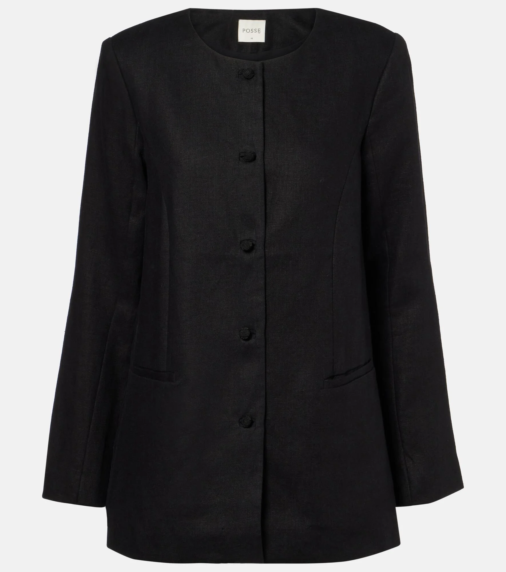 The Rio jacket from Posse is tailored from linen to a structured, boxy silhouette. This versatile style is elevated by padded shoulders and fabric-coated buttons on the front. Product Details - Material: 100% linen - Care instructions: hand wash cold - Made in China - Designer color name: Black - Item color: black - Closure: buttoned front - Pockets: welt pockets - Lining: 100% cotton - Item number: P01124636 Size & Fit - True to size - Shoulder pad inserts - Straight fit - Non-stretchy fabric - Falls below the hip - The model seen in the picture is 178cm-5'10" and wearing a size XS