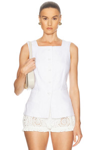 Details - Self: 100% linen - Lining: 100% cotton - Made in China - Dry clean only - Front button closure - Front faux welt pockets and back adjustable strap - Midweight linen fabric - Our Style No. PSSF-WS26 - Manufacturer Style No. PS1476-IVO