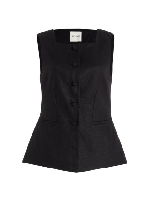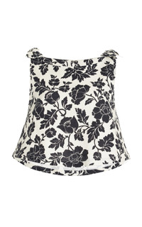 Centered on the principles of slow fashion, Aussie label POSSE is committed to producing the finest fabrications in limited quantities. Each piece is designed to be loved and worn for years to come — to be borrowed, swapped, passed down and cherished across a lifetime. The 'Romeo' top is crafted from smoothly-woven linen with striking B/W floral. Subtle flat bows adorn its straps. PRODUCT DETAILS - Resort '25 - Concealed zip fastening along back - Composition: 100% Linen - Designer color: Bone/Black - Dry clean or machine wash - Imported SIZE & FIT - Designed for a relaxed fit