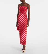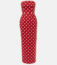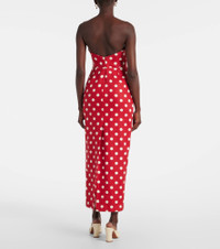 Product Details - Material: 100% linen - Care instructions: dry clean - Made in China - Designer color name: Polka Dot - Lining: 100% cotton - Fully lined - Closure: zipped back - Built-in bustier - Item number: P01041042 Size & Fit - Fits small to size - we recommend trying one size larger - Strapless - Internal boned corset for support - Cinched waist - Non-stretchy fabric - slit length 59,5cm-23.5" - The model seen in the picture is 178cm-5'10" and wearing a size S
