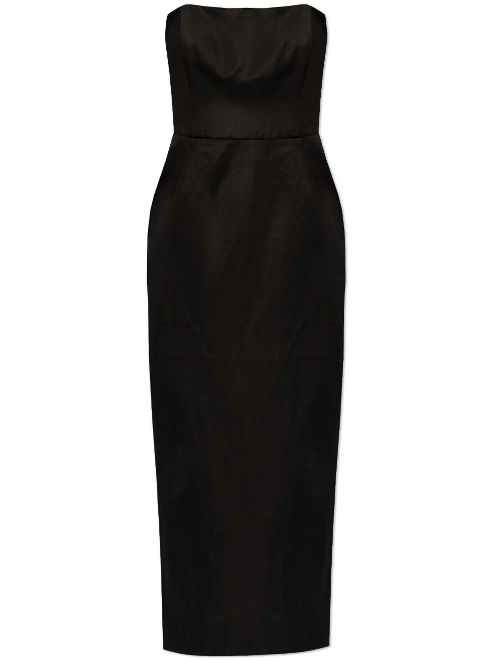 Romeo dress Highlights - Black - Oversize bow detail - Strapless - Low back - Rear slit Imported Composition Outer: Viscose 44%, Nylon 36%, European Flax™ Certified Linen 20%