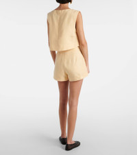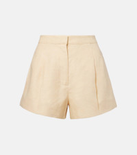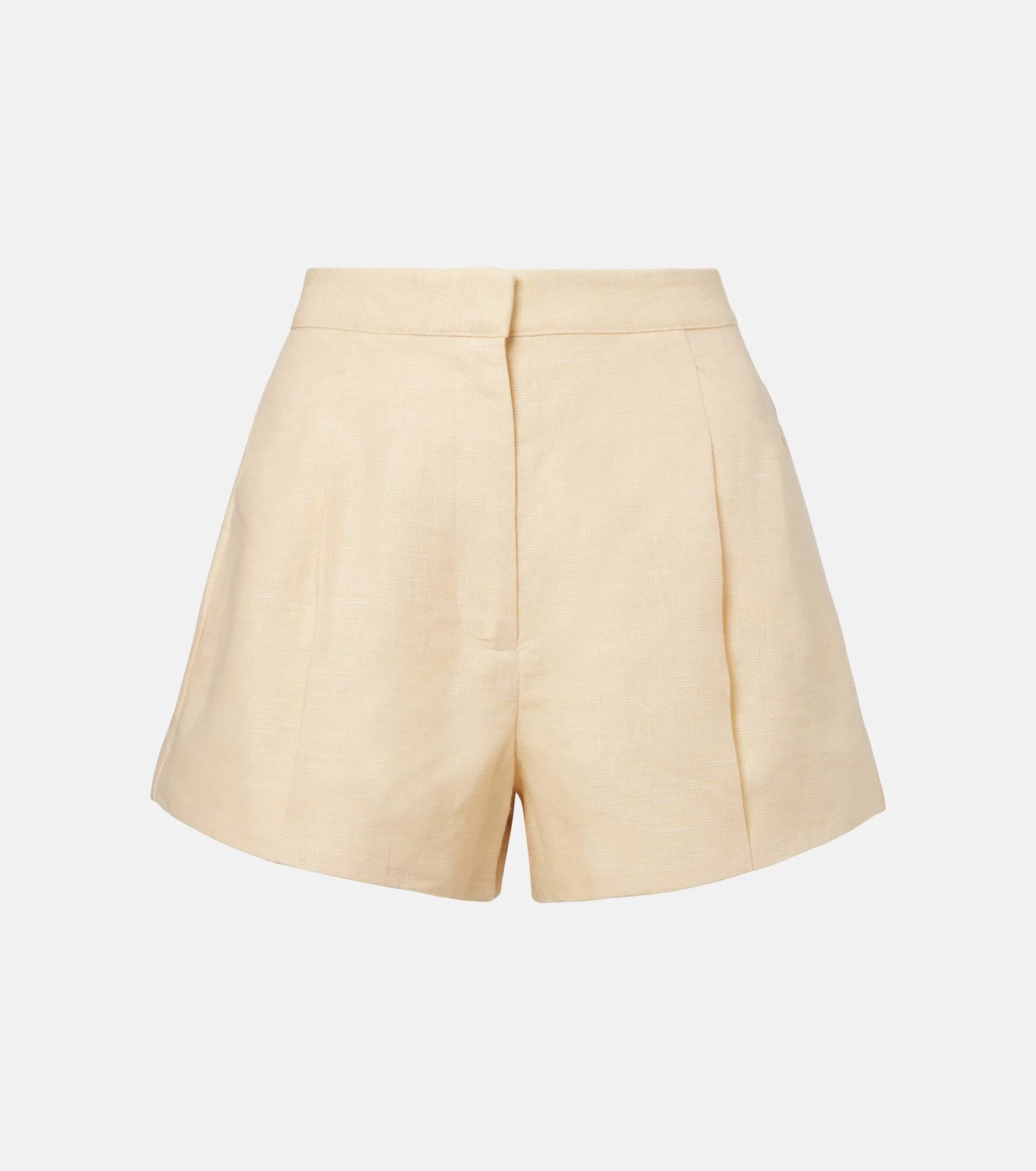 Crafted from pure linen, the Rosalie shorts from Posse showcase a high-waisted style and are cut to a straight silhouette. This design features pleats at the front and side slit pockets. Product Details - Material: 100% linen - Care instructions: dry clean - Made in China - Designer color name: Dusty Citron - Item color: yellow - Lining: 100% cotton - Closure: zipper fly, button and hook fastenings - Pockets: slant pockets - Item number: P01058181 Size & Fit - True to size - Non-stretchy fabric - Straight leg - High-waisted - The model seen in the picture is 178cm-5'10" and wearing a size XS