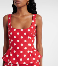 Create effortlessly elegant ensembles around the Rosalie top from Posse. Made from breathable linen, this polka-dot style is completed with a peplum hem and shirred detailing at the back. Product Details - Material: 100% linen - Care instructions: dry clean - Made in China - Designer color name: Polka Dot - Item color: red - Lining: 100% cotton - Closure: invisible zipper - Item number: P01058184 Size & Fit - True to size - Elasticated top - Cinched waist - Non-stretchy fabric - Slightly cropped - The model seen in the picture is 178cm-5'10" and wearing a size XS