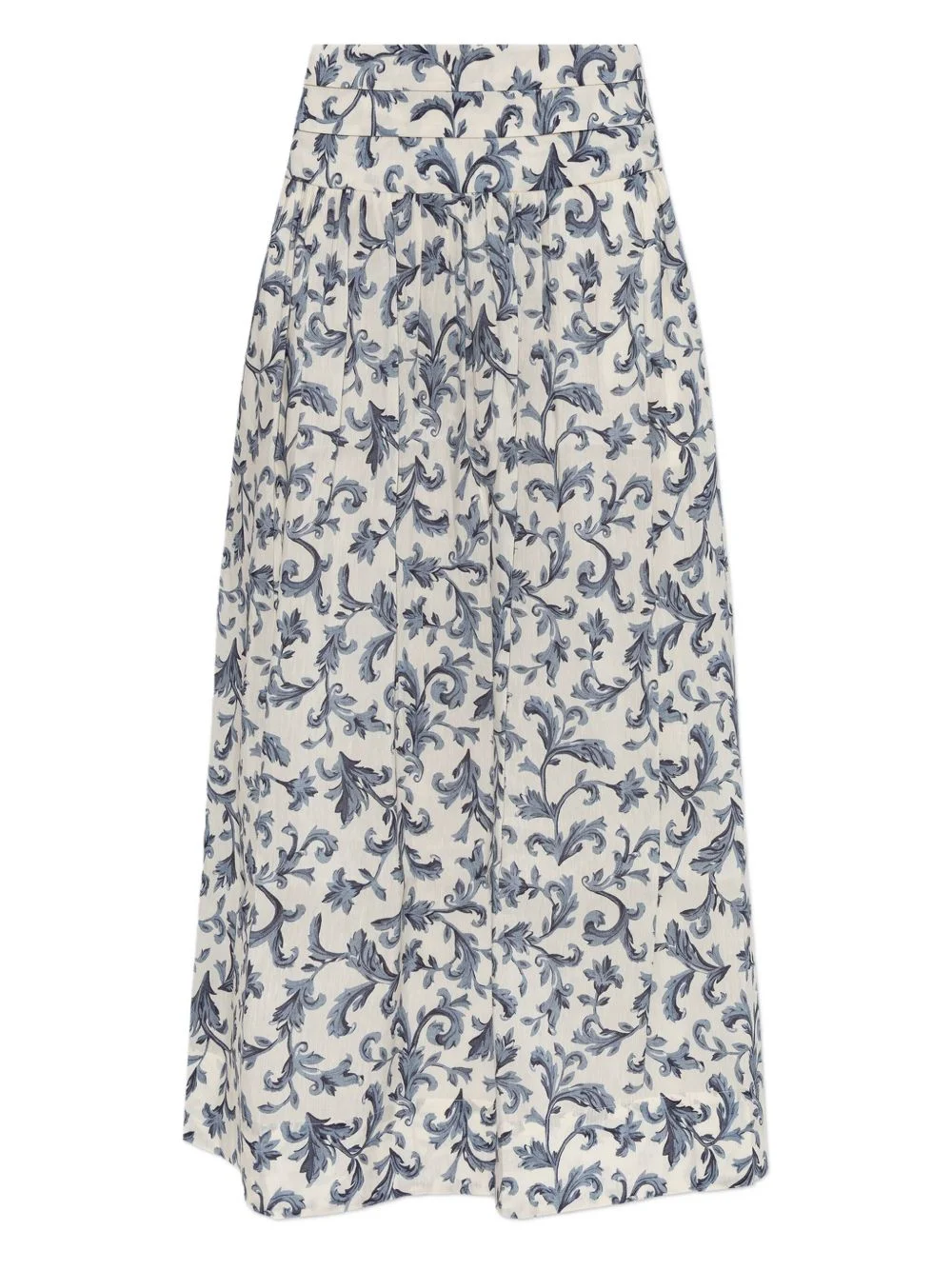Rue baroque-print maxi skirt Highlights - White and blue - Baroque print - Pleated Imported Composition Linen/Flax 82%, Silk 18% Washing instructions Dry Clean Only