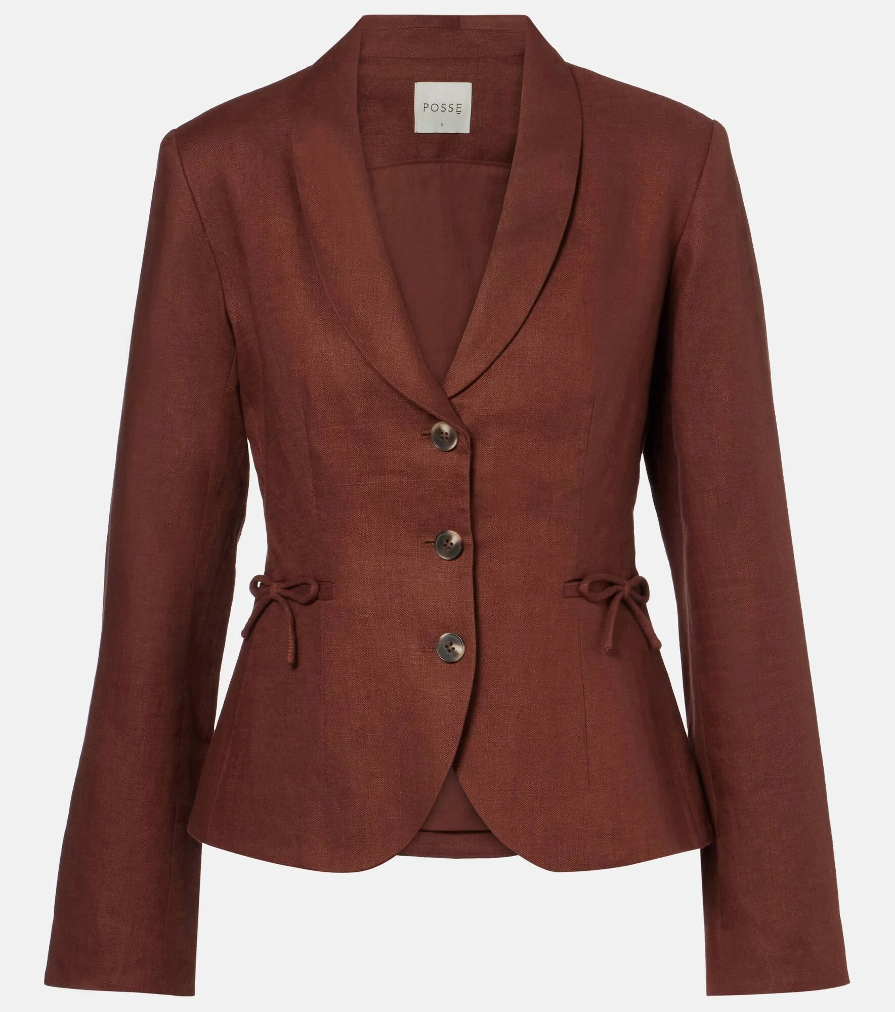 Look to Posse for endlessly elegant pieces you'll adore season after season. Made from breathable and lightweight linen, the Sabine blazer comes in a single-breasted silhouette and is complete with welt pockets. Product Details - Material: 100% linen - Care instructions: hand wash cold - Made in China - Color: brown - Designer color name: Chocolate - Item color: brown - Closure: single-breasted (three buttons) - Pockets: welt pockets - Cuff: three buttons - Item number: P01128126 Size & Fit - True to size - Shoulder pad inserts - Cinched waist - Non-stretchy fabric - Falls to the hip - The model seen in the picture is 178cm-5'10" and wearing a size XS