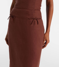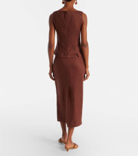 Posse channels effortless elegance through timeless silhouettes and refined simplicity. The Sabine skirt is crafted from pure linen and is cut to a flattering pencil silhouette. Product Details - Material: 100% linen - Care instructions: hand wash cold - Made in China - Color: brown - Designer color name: Chocolate - Item color: brown - Closure: concealed zipped back - Short vent - Item number: P01128128 Size & Fit - True to size - Non-stretchy fabric - The model seen in the picture is 178cm-5'10" and wearing a size XS