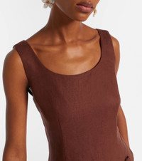 Posse channels effortless elegance through timeless silhouettes and refined simplicity. The Sabine top is crafted from pure linen and features zipped closure at the back. Product Details - Material: 100% linen - Care instructions: hand wash cold - Made in China - Color: brown - Designer color name: Chocolate - Item color: brown - Closure: concealed zipped back - Item number: P01128127 Size & Fit - Fits large to size - we recommend trying one size smaller - Cinched waist - Non-stretchy fabric - Falls to the hip - The model seen in the picture is 178cm-5'10" and wearing a size XXS