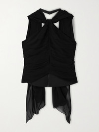 Solene Scarf-detailed Ruched Chiffon Halterneck Top