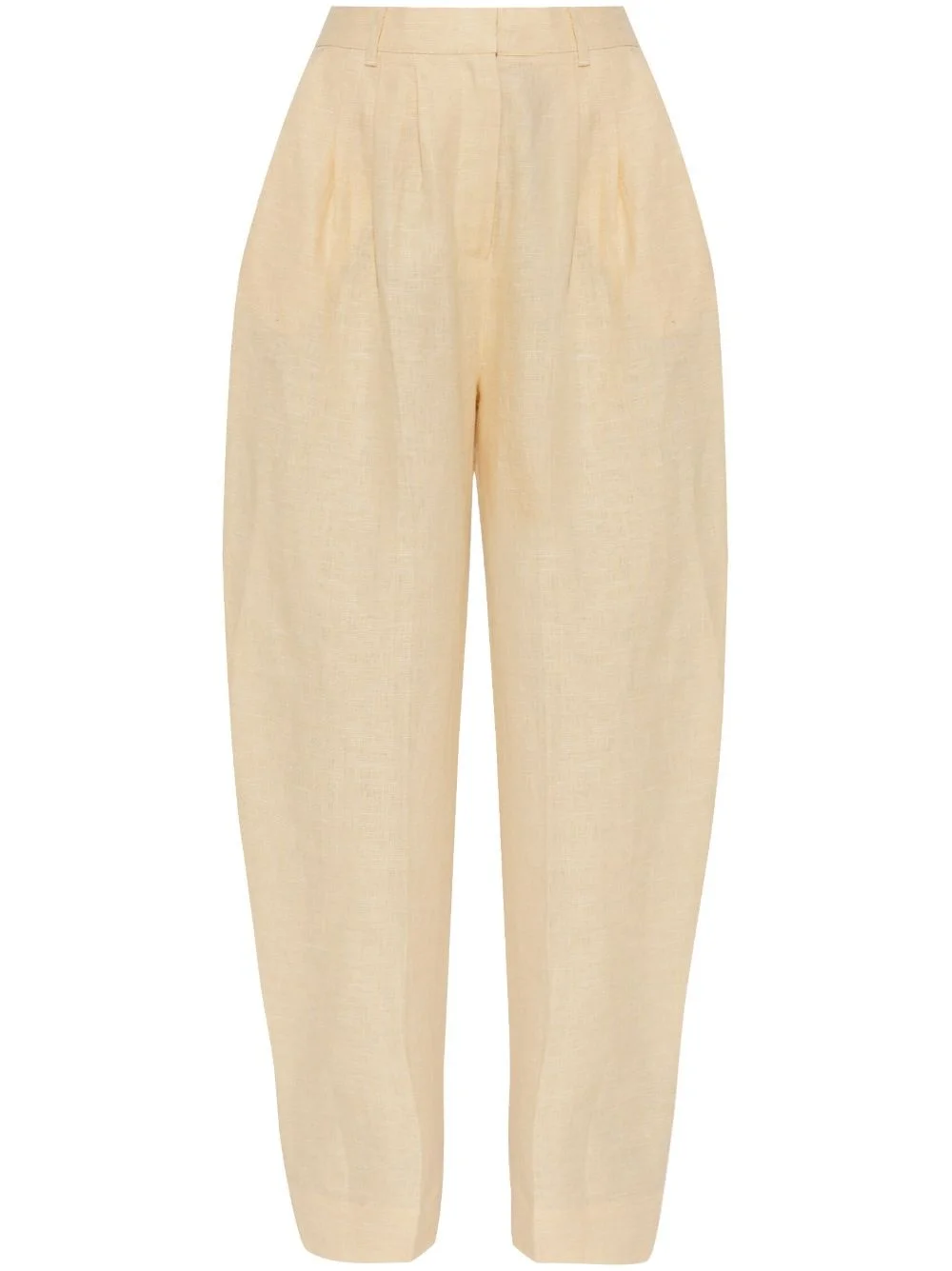 tailored tapered trousers Highlights - Light yellow - Concealed front fastening - Two side slit pockets - Pleat detailing Imported Composition Flax 100%