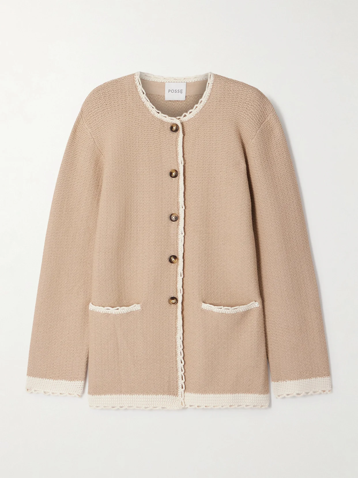 Posse's 'Willow' cardigan is designed to be worn with the matching tank and shorts, but we also love it with denim and printed dresses. It's knitted in a longline shape and finished with crochet trims along the edges.