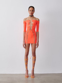POSTER GIRL's unforgettable slim-fit Alice dress is perfect if you're looking for something bold, fun and striking for parties and special occasions. Off-shoulder silhouette and array of trippy cutouts. POSTER GIRL's shapewear category is designed to suction you in all the right places, releasing and supporting your natural curves where needed. Always remember, the brand logo is stamped into the lower back of all shapewear designs as POSTER GIRL's mark of authenticity. - The dress is one size fits most (UK 6-18) - 98% Nylon 2% Spandex - Model Height: 5'9"/ 175cm RETURNS This item is FINAL SALE and is not eligible for a refund, exchange or credit note. This policy is stated clearly on our Returns & Exchanges page.