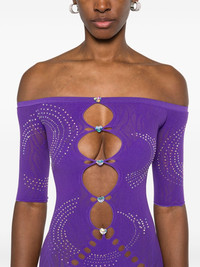Alice mini dress Highlights - Plum purple - Crystal embellishment - Cut-out detailing - Lettuce hem Imported Composition Nylon 98%, Spandex/Elastane 2% SIZE & FIT Model measurements Height 5 ft 10 in(1.77 m) Bust/Chest 29.92 in(76 cm) Hips 34.25 in(87 cm) Waist 23.62 in(60 cm) Measurement BUST 15.74 in(40 cm) HIPS 15.74 in(40 cm) LENGTH 28.34 in(72 cm) Shoulder Width 11.02 in(28 cm) SLEEVE LENGTH 8.26 in(21 cm) WAIST 15.74 in(40 cm) FittingInformation Designed for a close fit throughout Made from a midweight stretch fabric, this piece offers elasticity and flexibility when worn This piece is only produced in one size; for help with this item's sizing, refer to our product measurements