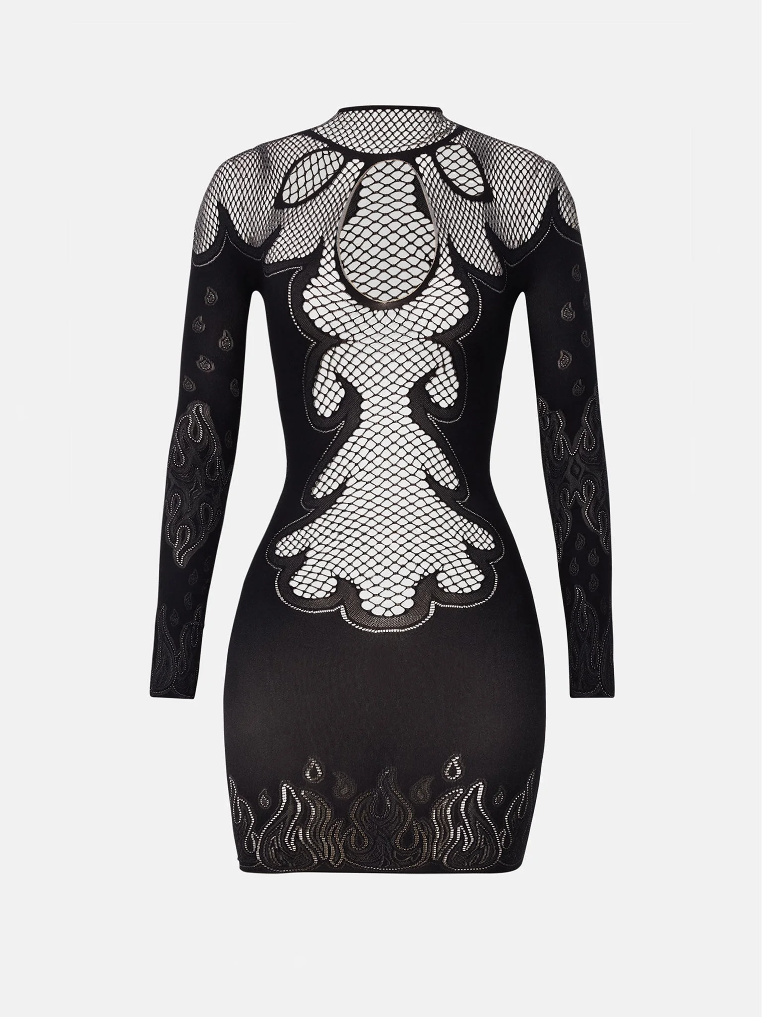 We couldn't be more serious about our As If Dress. Flame details outline your waist and your underboob, with heart buttons securing the back to support your natural curves. Always remember, the brand logo is stamped into the lower back of all designs as POSTER GIRL's mark of authenticity. - The dress is one size and can stretch from a UK size 6 - 18 - Model Height: 5'10 1/2"/ 178cm - Made in Italy
