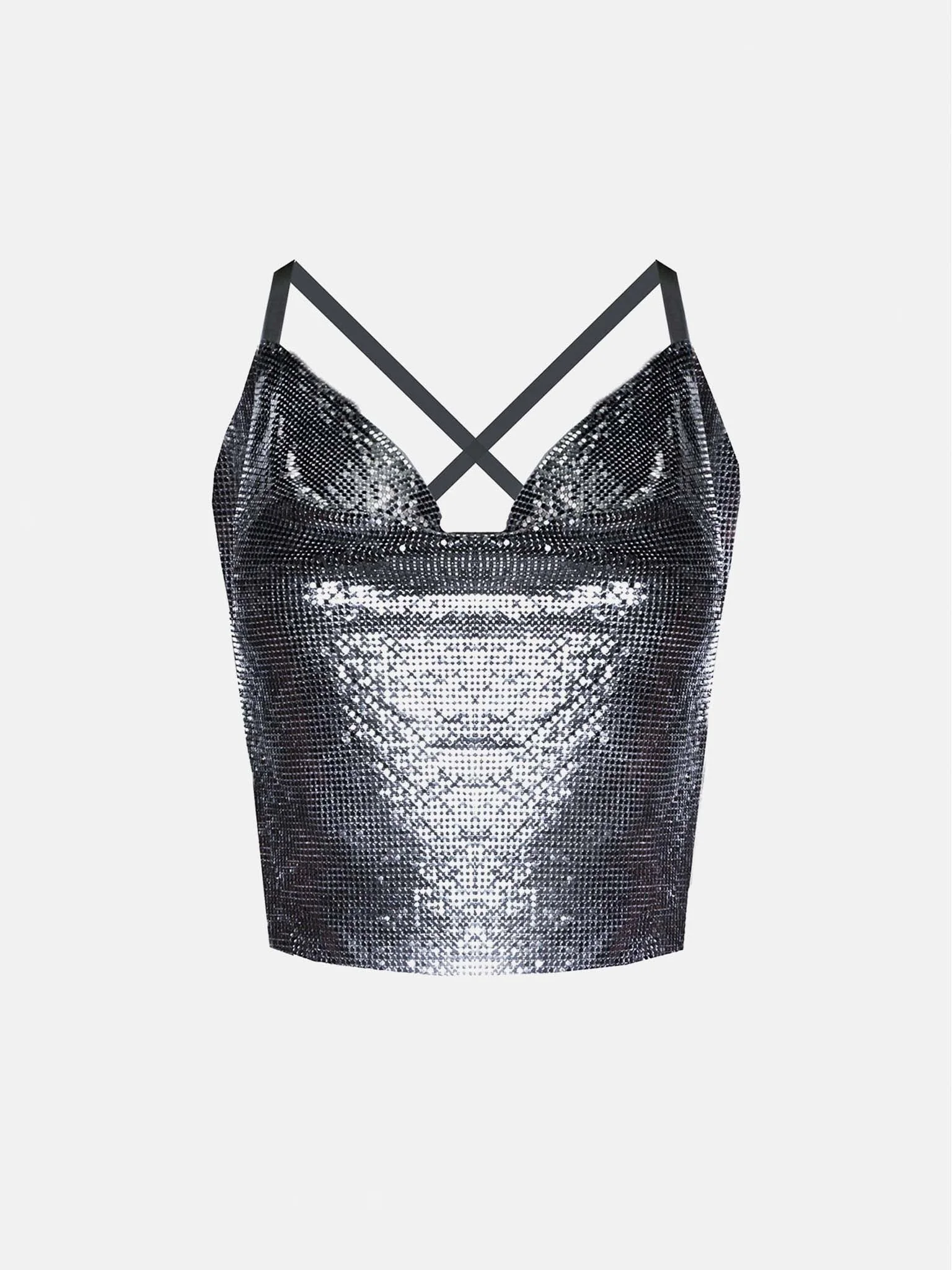 The Bambi has forever been our signature statement top. It's light-catching micro metal-mesh flattering cowl drape neckline construction, this feminine piece has become one of our best-sellers. - Outer - 100% Aluminium - Lining - 95% Polyamide 5% Elastane Each chainmail piece is constructed by hand in London. Chainmail is unlike most fabrics so it is important to take care when trying on. Chainmail ranges from XS-XL and does not stretch. Never force the garment on otherwise the chainmail will rip. If you are in-between sizes, we recommend sizing up. COMPOSITION & CARE - Outer: - 100% Aluminium - Lining: - 95% Polyamide 5% Elastan