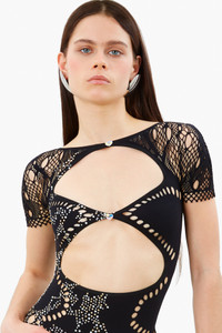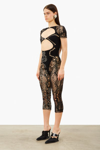 The Barbi Jumpsuit is fresh from the SS23 runway featuring our brand new beautiful snake print lace and embellishment details that descent along the body. With cut-out heart crystal embellishments this is the perfect jumpsuit for date night a girls night out. POSTER GIRL's shapewear category is designed to suction you in all the right places, releasing and supporting your natural curves where needed. Always remember, the brand logo is stamped into the lower back of all shapewear designs as POSTER GIRL's mark of authenticity. An exclusive from the SS23 runway. The dress is one size fits most ( UK 6 - 18 ) COMPOSITION & CARE - 98% Nylon 2% Spandex