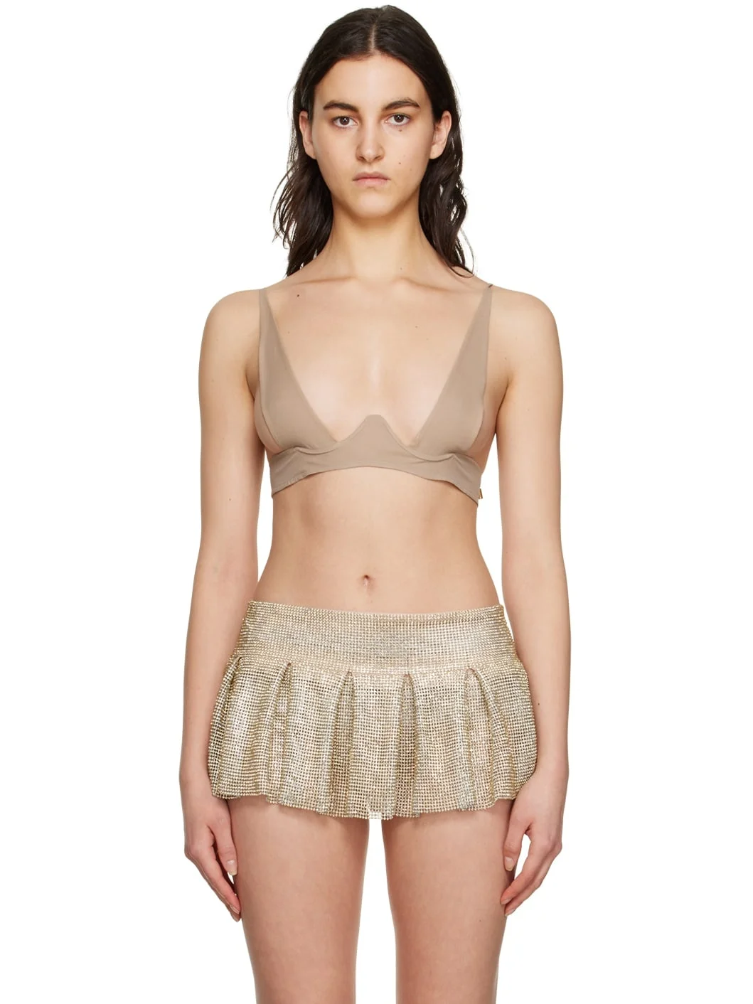 Silk crepe bra. · Modified V-neck · Underwire at cups · Self-tie halter strap · Self-tie fastening at back · Unlined Supplier color: Sand 100% silk. Made in United Kingdom 231770F111007