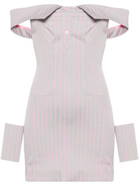 Blake mini dress Highlights - Light grey/rose pink - Stretch-cotton - Short front button fastening - Concealed rear zip fastening - Vertical stripe pattern - All-over logo print - Folded edge - Off-shoulder - Short sleeves - Optional buttoned cuffs - Full lining - Straight hem - Thigh-length Imported Composition Outer: Cotton 97%, Spandex/Elastane 3% Lining: Polyester 90%, Spandex/Elastane 10% Washing instructions Hand Wash