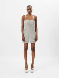 Make your statement crystal clear. Our crystal chainmail mini dress has removable bra cup padding and removable and adjustable straps to wear to your desired length. Designed with a side seam zip for easy closure. - Crystal chainmail mini dress - Removable bra cups paddening - Removable & adjustable straps - Side seam zip - Model wears size S - Model Height: 5'7"/ 174cm