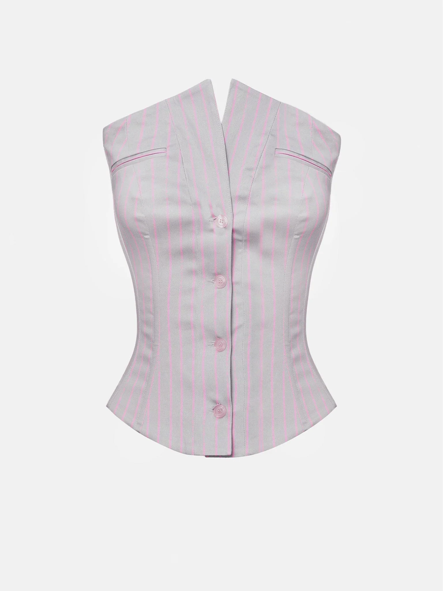 COURT CORSET TOP GREY/PINK PINSTRIPE