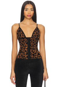 - 63% Polyamide 37% Elastane - Machine wash - Exposed front hook and eye closure - Unlined - Sheer fabric - Revolve Style No. PGIR-WS75 - Manufacturer Style No. AW25FLTP009