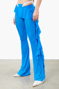 The Elle Trousers are brand new from the Resort 23 collection. Crafted from semi-sheer luxurious stretch mesh. With panelled detailing and a ruffled skirt overlay, this style has a slim fit through the thighs before falling to flared hems. Pair with the Dolly Bodysuit for the complete look. - As seen on the Miami 23 runway - 65% Nylon 35% Spandex - Model Height: 5'9"/ 175cm and wears size S