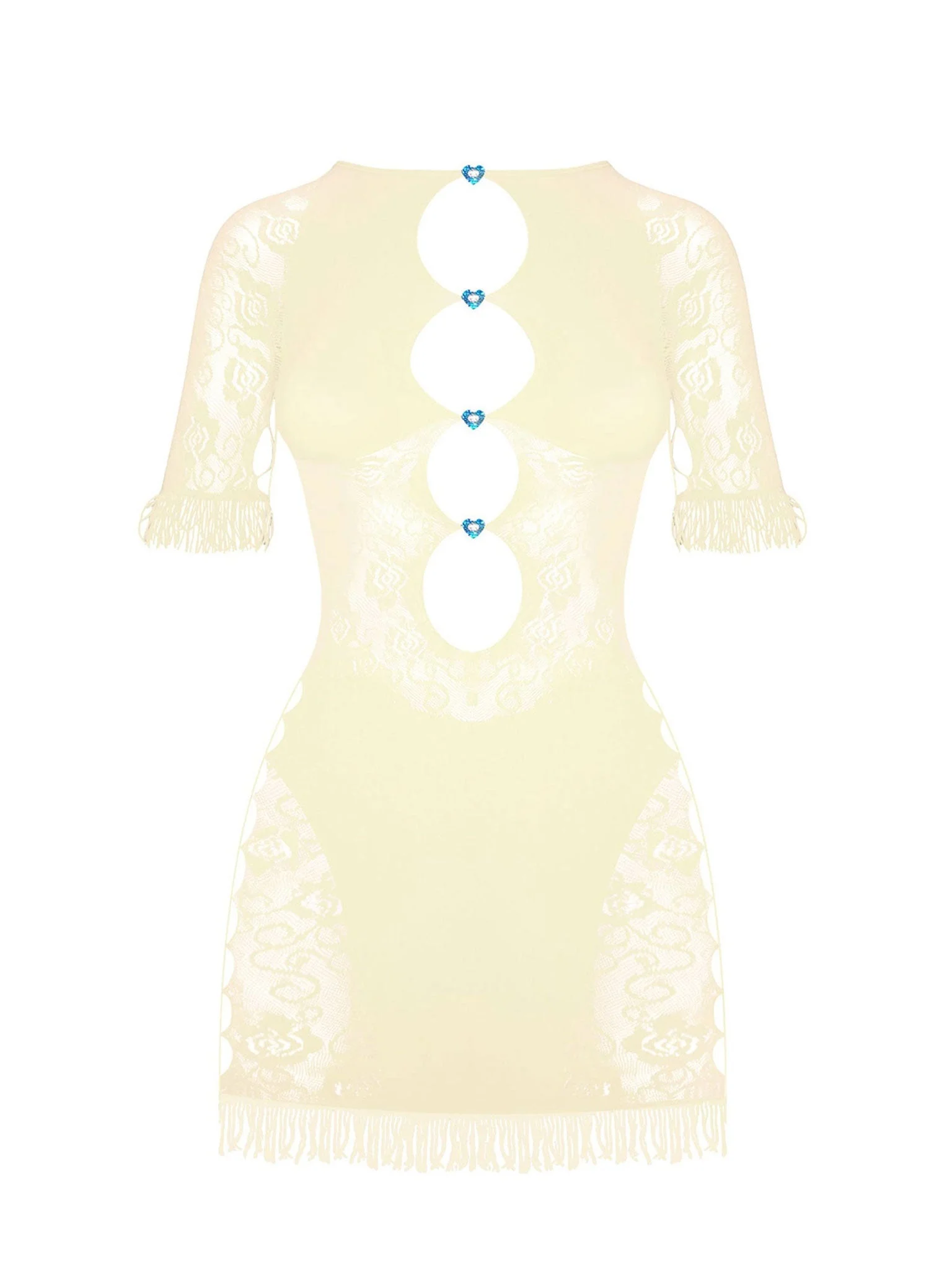 The dress that broke the internet. POSTER GIRL first launched the iconic Miranda Dress as part of their Spring Summer 2021 campaign, and have not looked back since. This Spring Summer 2022 version adds a hint of romance with rose vine lace detailing and updated crystal hearts with prismatic glimmers. POSTER GIRL's shapewear category is designed to suction you in all the right places, releasing and supporting your natural curves where needed. Always remember, the brand logo is stamped into the lower back of all shapewear designs as POSTER GIRL's mark of authenticity. - The dress is one size fits most (UK 6-18) - 98% Polyamide 2% Spandex - Heart embellishment repair kit included - Model Height: 5'9" / 175cm