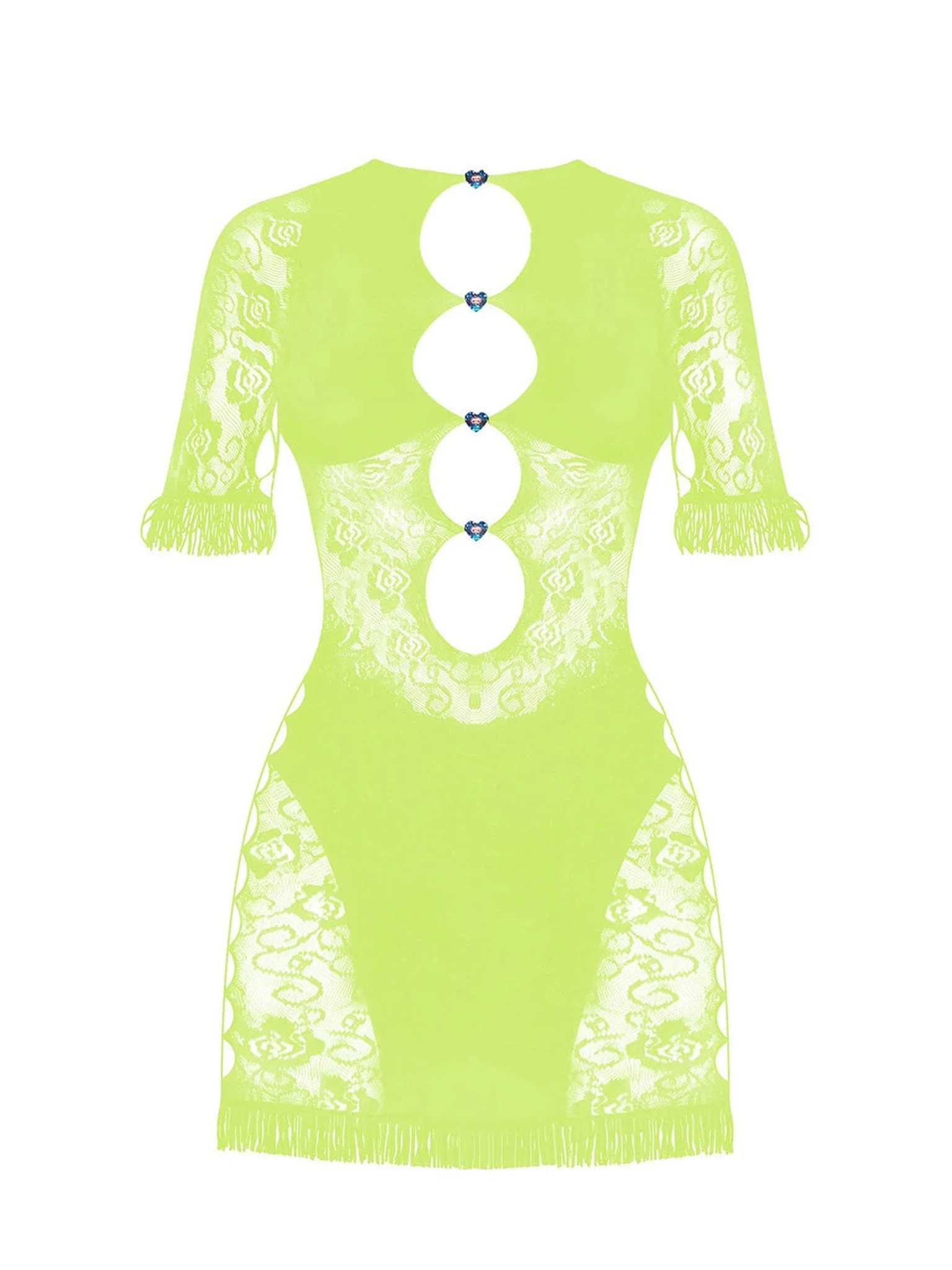DESCRIPTION The dress that broke the internet. POSTER GIRL first launched the iconic Miranda Dress as part of their Spring Summer 2021 campaign, and have not looked back since. This Spring Summer 2022 version adds a hint of romance with rose vine lace detailing and updated crystal hearts with prismatic glimmers. POSTER GIRL's shapewear category is designed to suction you in all the right places, releasing and supporting your natural curves where needed. Always remember, the brand logo is stamped into the lower back of all shapewear designs as POSTER GIRL's mark of authenticity. - The dress is one size fits most - 98% Polyamide 2% Spandex - Heart embellishment repair kit included - Model Height: 5'9"/ 175cm