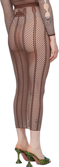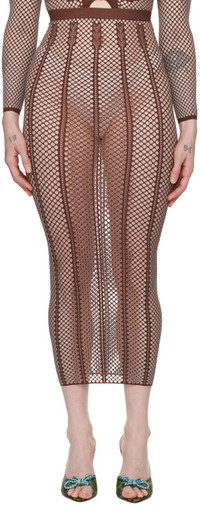 Stretch nylon- and polyester-blend fishnet skirt. Jacquard graphic pattern throughout. · High-rise · Rib knit waistband · Jacquard logo graphic at front Supplier color: Old money brown
