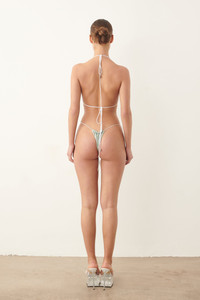 The Woods Bikini Bottoms is made from a smooth stretch green & white pinstripe fabric. These bikini bottoms feature adjustable ties for your perfect fit and offers medium coverage. Locally made in London, our Woods bikini bottoms have been designed to be reversible and offer a two in one option, where you can choose either green & white pinstripes or turn it over for a solid green bikini look. Take a closer look at the print and you'll see the custom POSTER GIRL logo! Pair with the matching Elle Bikini top for the complete look! - Custom PG logo pinstripe fabric - Reversible bikini bottoms - Medium coverage - Adjustable side hip ties - Model Height: 5'6" / 172cm and wears size S
