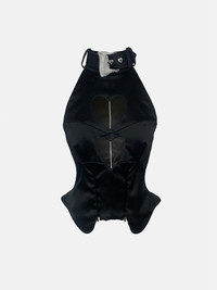 The Heartie Tank Top is brand new for AW23. A staple top crafted in London with exquisite tailoring techniques, this plunging corset top features our iconic custom buckle, updated with this seasons pearls and heart cutouts highlighting the chest. Zippers feature on the front of the top, opening and contouring the waist. Pair with the Kracken Hotpants Black Canvas and Oshun Leather Chaps Black to complete the AW23 look. - High shine duchess satin - Pearl encrusted buckle engraved with logo - Fully lined - Heart cutouts - Zipper contouring - Back zipper - Outer: 48% Acetate 45% Polyamide 7% Lyocell - Model Height: 5'10" / 178cm and wears size S COMPOSITION & CARE - Composition: - Outer: 48% Acetate 45% Polyamide 7% Lyocell - Care guide: - Dry clean only - Do not wash - Do not bleach - Do not tumble dry - Cool iron on reverse side