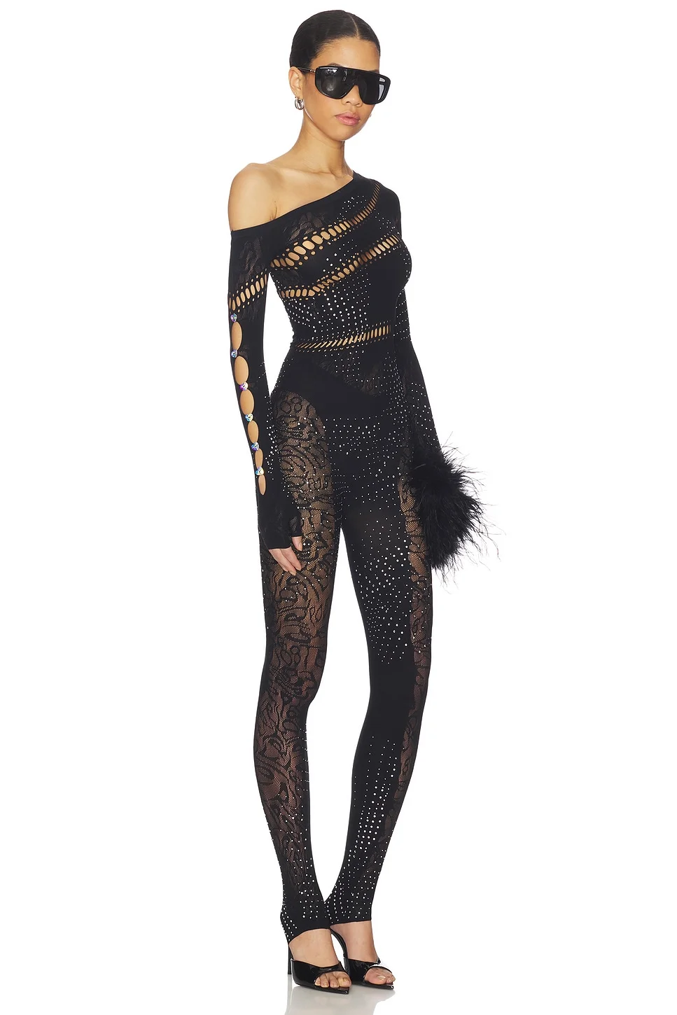 - 98% nylon 2% elastane - Made in China - Hand or machine wash cold - Pull-on styling - Heart rhinestone detailing - Stretch mesh fabric - Cut-out styling.3" at the leg opening - Revolve Style No. PGIR-WC31 - Manufacturer Style No. PS26SWHF003