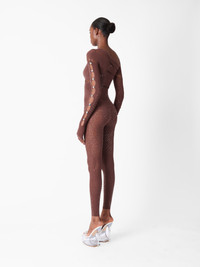 IVY LONG RHINESTONE JUMPSUIT OLD MONEY BROWN