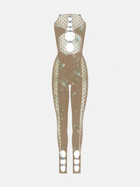 The Rhinestoned Janice Jumpsuit really needs no introduction. Worn this year by the likes of Vanessa Hudgens, Bia, Charli XCX, Izabel Gourlart, Stefflon Don & Jordyn Woods to name a few, this romper is a certified party staple.Murmurations of iridescent rhinestones swarm front & back, iconic cutout peep holes descend on the bust & legs, and our signature suctioning shapewear sweeps your curves to perfection. POSTER GIRL's brand logo is always stamped into the lower back of each garment, confirming its authenticity. - This jumpsuit is One Size fits most (UK 6 - 18) - Shop the rest of our Janice jumpsuit collection. - 98% Nylon 2% Spandex COMPOSITION & CARE - 98% Nylon 2% Spandex