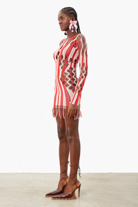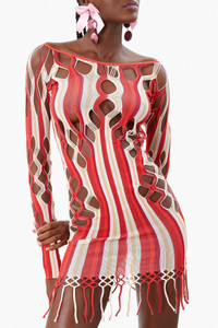 The Krill Dress is brand new for AW23. Featuring semi sheer stretch shapewear, hand dyed yarns blended together in Oyster and Burgundy stripe and our infamous diamond cut open weave lacing that contours every body to perfection. Featuring a tassel hemline. POSTER GIRL's shapewear category is designed to suction you in all the right places, releasing and supporting your natural curves where needed. Always remember, the brand logo is stamped into the lower back of all shapewear designs as POSTER GIRL's mark of authenticity. - Sculpting shapewear - Hand dyed striped yarn - Diamond weave lacing cut out - One size fits most (UK6-18) - Tassel hemline - 98% Nylon 2% Spandex Returns This item is non-refundable due to hygiene reasons. Once removed from the packaging or seal broken, we will be unable to offer any return option. This policy is stated clearly on our Returns & Exchanges page.