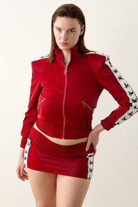You're still out of their league. The League Tracksuit Top is designed with glossy fabric and boxy shoulder pads for a boss b***h vibe. Our sex tape design is down the sleeves with our PG custom zip puller attached to the centre front silver zip. The elasticated waist hem will let you wear it long or cropped. - Sex tape down sleeves - Center front zip with PG custom zip puller - Elasticated waist hem - Boxy shoulder pads - Model wears size L - Model height: 5'8/177cm