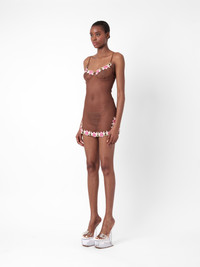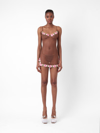 Introducing the Peony Dress as part of our lingerie collection. This dreamy mini dress has been crafted from a mesh chiffon fabric and features delicate embroidered flowers and leaves across the bust and along the hem. - Chiffon mesh fabric - Embroidered flowers & petals - Adjustable shoulder straps - Model wears size XS - Model Height: 5'9.5"/ 176cm