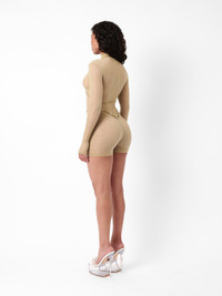 This body-skimming playsuit has been designed to accentuate your body in all its glory. Cut from a semi sheer gloss fabric, this long-sleeved playsuit features sexy cutouts with rhinestone heart detailing. Pair with the Glass Slippers for the complete look. - Semi sheer gloss fabric - Cut outs with rhinestone heart detailing - Long sleeves - Center back zip - Model wears size S - Model Height: 5'6" / 168cm