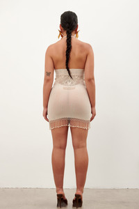 POSTER GIRL's shapewear category is designed to suction you in all the right places, releasing and supporting your natural curves where needed. The Poseidon Dress is a brand new design for AW23, featuring our brand new heart & bow intricate lacing, swarms of iridescent rhinestones, a halter neck and fringing detailing - finished with beaded pearls. As always, our shapewear features our infamous peep hole cut outs with heart iridescent buttons. Exclusively available in Candy Pink. Always remember, the brand logo is stamped into the lower back of all shapewear designs as POSTER GIRL's mark of authenticity. - Sculpting shapewear - Hotfix embellished details - Heart & bow lacing - Peep hole cut outs - Crystal heart embellishment - Halter neck detail - Fringed hem with pearls - 98% Nylon 2% Spandex - Model Height: 5'7"/ 170cm COMPOSITION & CARE - Composition: - 98% Nylon 2% Spandex - Care guide: - Machine wash on gentle cycle at 30 degrees - Do not iron - Do not tumble dry - Do not dry clean - Avoid rough surfaces - Take care when trying on - Heart embellishment repair kit included