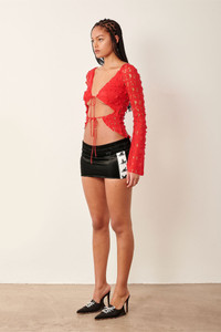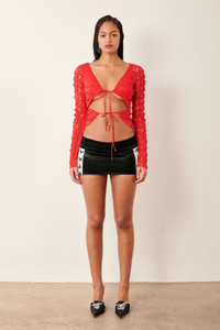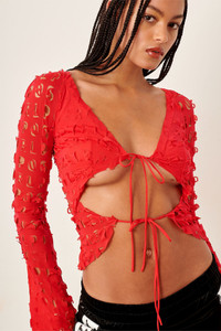 Show them up in our Geneva Top, made from custom PG laser cut powermesh fabric, and featuring a v plunging neckline so you can bring the girls out to play. We included adjustable front ties with PG heart cord stoppers to let you cover up as little or as much as you desire. - Custom PG laser cut powermesh fabric - Adjustable front ties with PG heart cord stoppers - V plunging neckline - Model wears size S - Model Height: 5'11/ 180cm