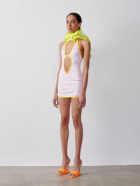 This pink POSTER GIRL Regina cutout gingham mini dress is made in London from stretch jersey for a close fit. The sleeveless silhouette features an all-over gingham print, blue cheeky motifs and crystal-embellished cutouts at the front. It's finished with yellow elasticated halter ties and an open back. Unlike Regina George, we don't restrict ourselves to only wearing pink on Wednesdays. We'll be wearing this mini dress every other day of the week, too. - 95% Polyamide 5% Elastane - Model Height: 5'9"/ 175cm and wears size S